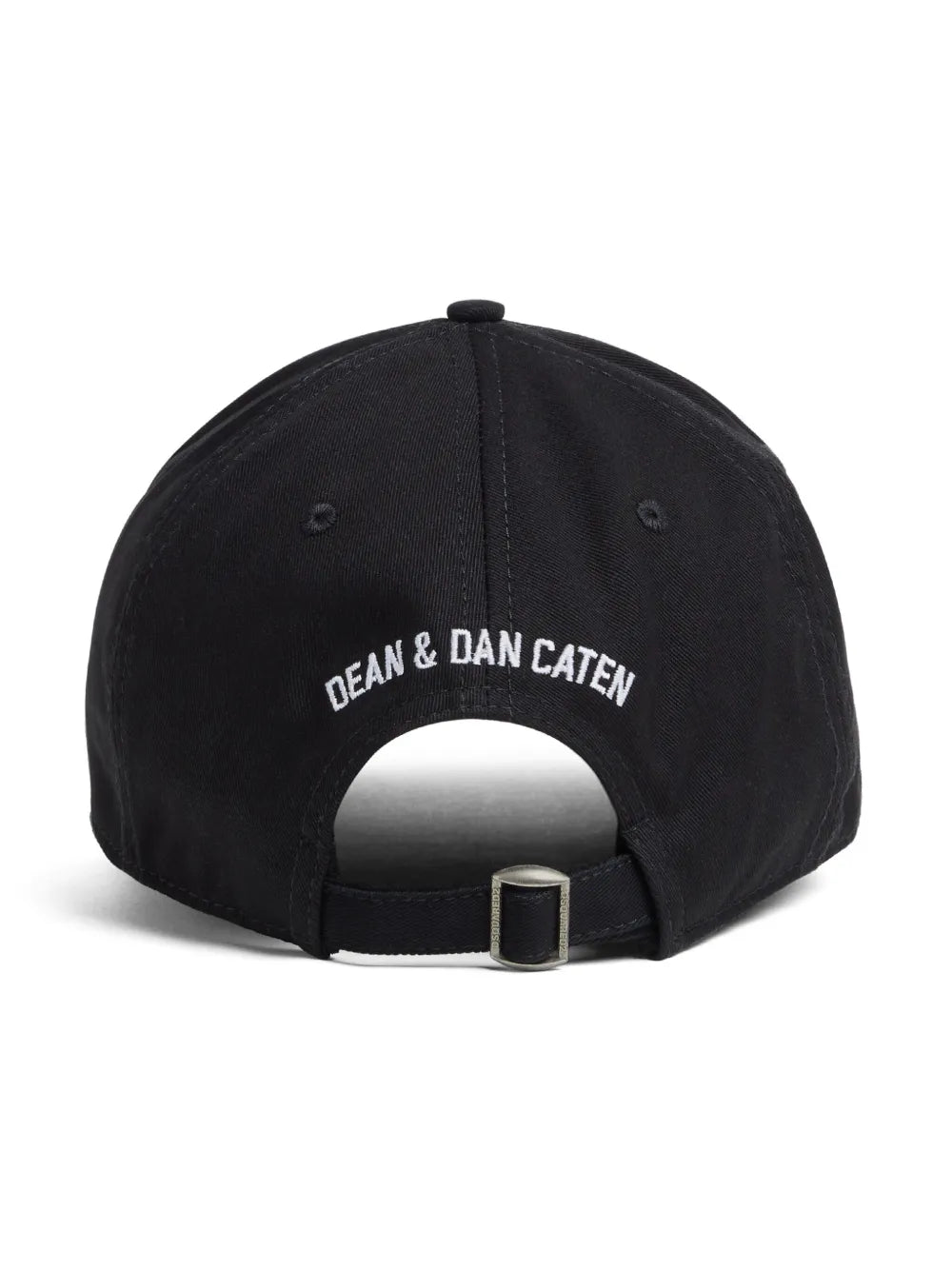 Black/white, cotton, logo print on the front, embroidered slogan on the back, buckle closure