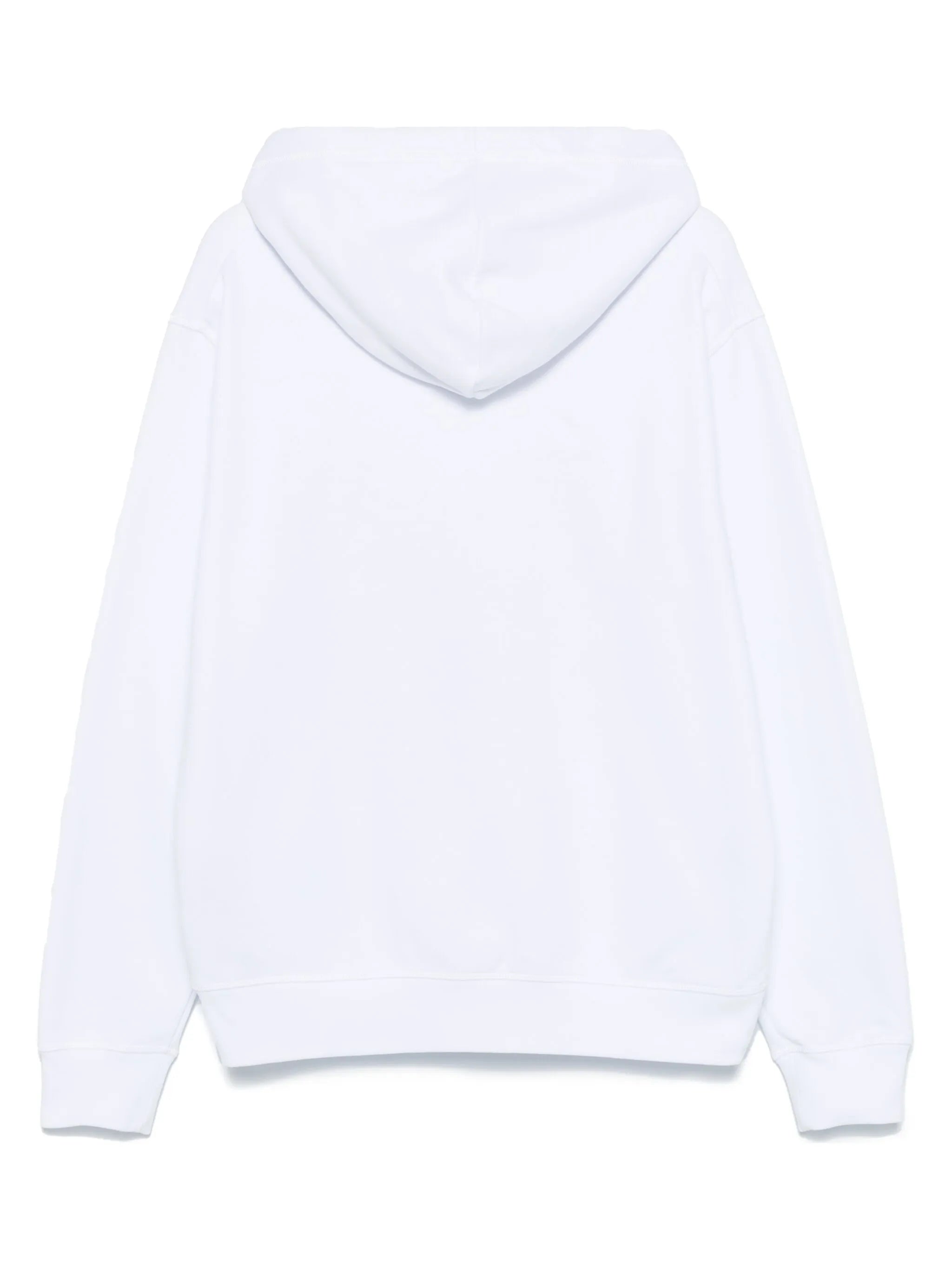 White cotton jersey texture bear print front logo print front hood with drawstring long sleeves ribbed cuff and hem straight hem