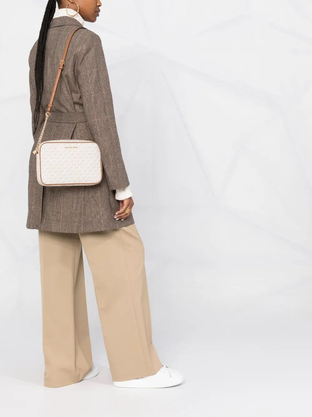 Cedar brown, canvas, waxed finish, monogram print, gold-colored logo plaque, gold-colored hardware with logo engraving, adjustable shoulder strap with chain, top zipper, main compartment, several interior slip pockets, interior logo plaque. This item comes with a dust bag.