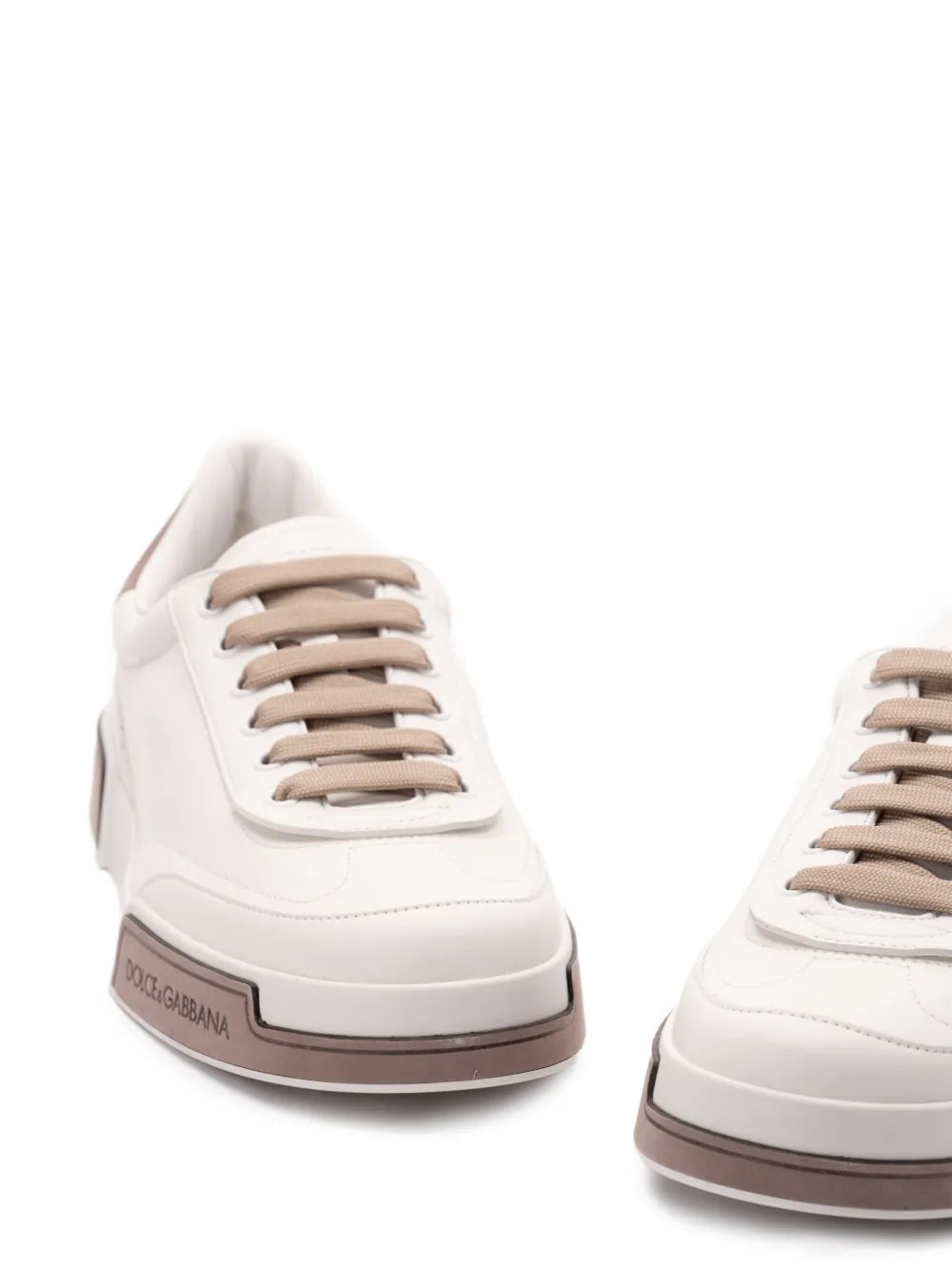 Light beige, front lacing, tongue with logo embossing, contrast heel with logo, logo embossing in the footbed