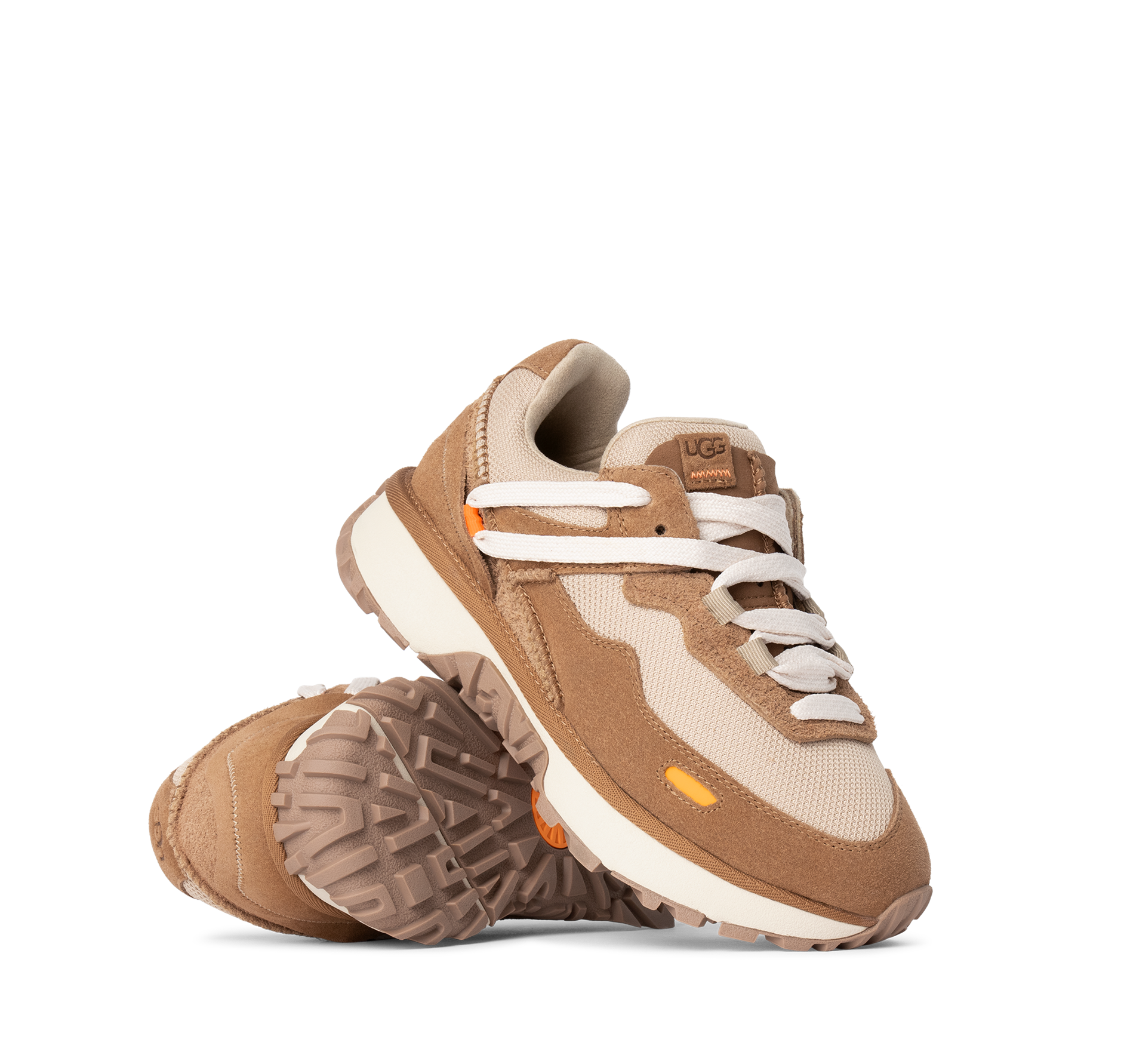 Brown, mesh details, contrasting stripes, padded sole, laces, padded collar