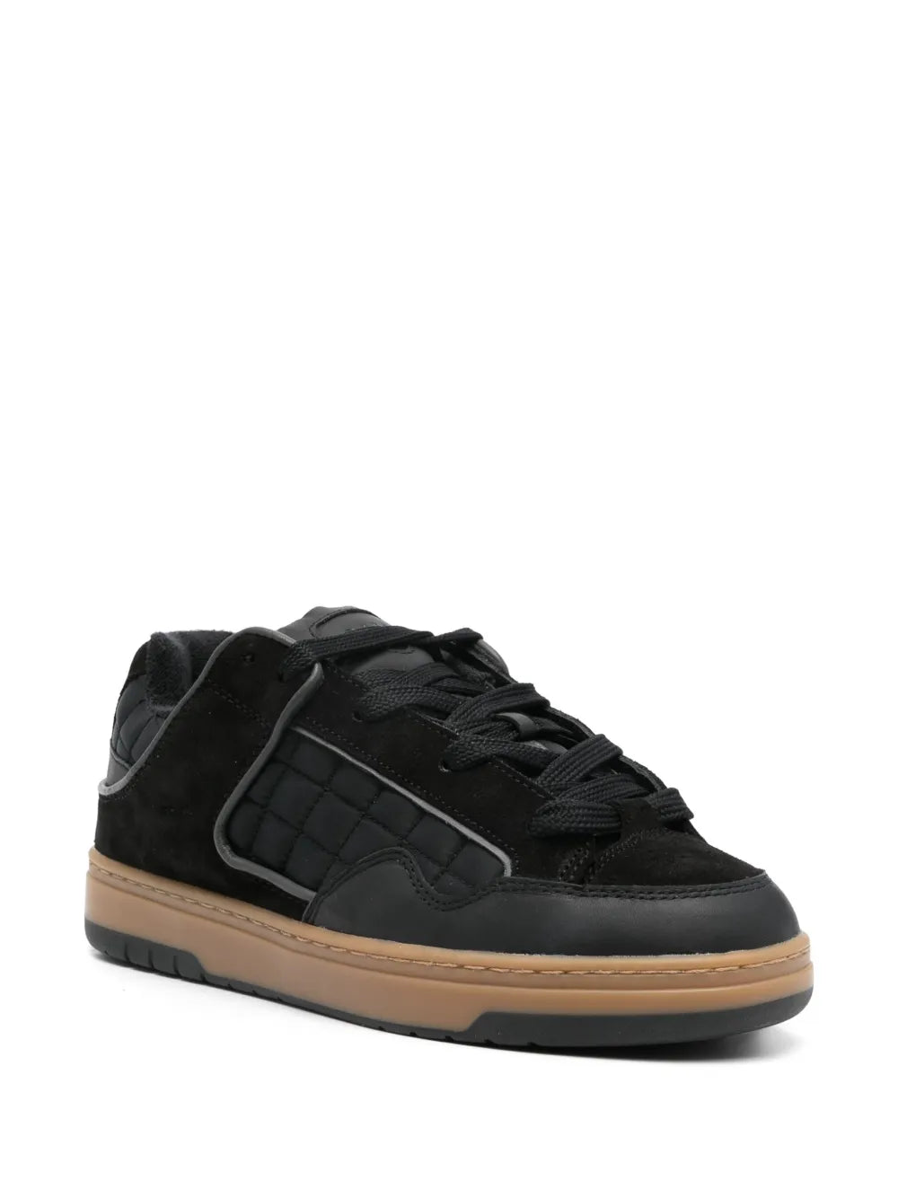 Černá, telecí semiš, více vložek, šněrování vpředu, logo na patní části, polstrované vložky na straně, logo nášivka na jazyku, perforovaná špička, kulatá špička, podšitý svršek, logo ražba ve stélce, froté podšívka, nízká gumová podrážka
