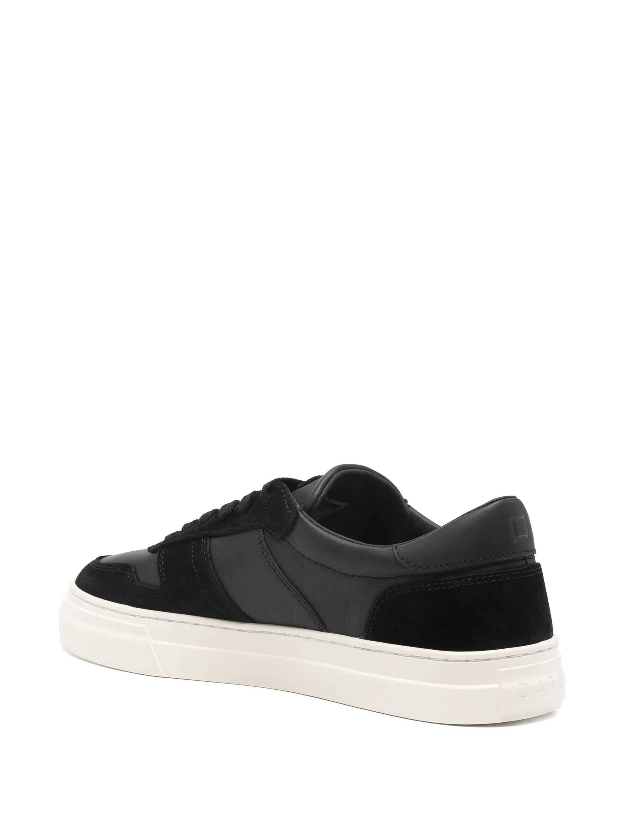 Černá, telecí kůže, hladká kůže, kontrastní detaily, šněrování vpředu, logo na patní části, logo nášivka na jazyku, embosovaný detail na boku, perforovaná špička, kulatá špička, kožená stélka s logem, gumová podrážka